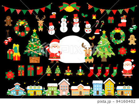 サンタとトナカイのクリスマスイラストセット(グリーン)