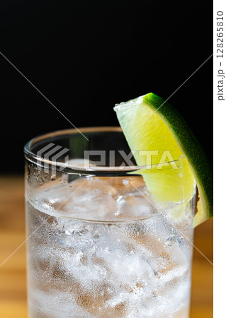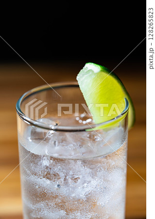 【カクテル素材】氷の入ったグラスに注がれた美味しそうなジントニック【ドリンク素材】
