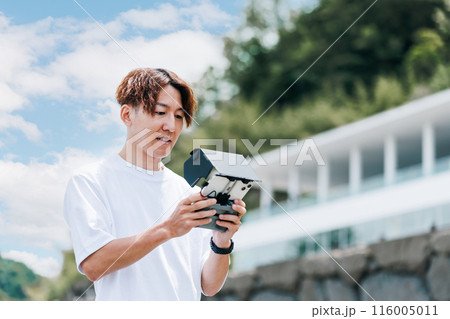 動画・映像クリエイター 男性 動画マーケティング 編集 宣伝活動 俯瞰 ジンバル 2人 表現