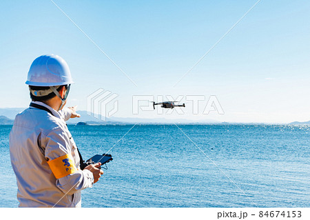 ドローンを操縦する作業員 2022年3月滋賀県にて撮影