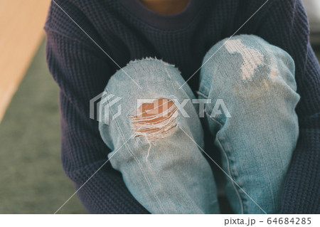 膝の部分が破れたジーンズ