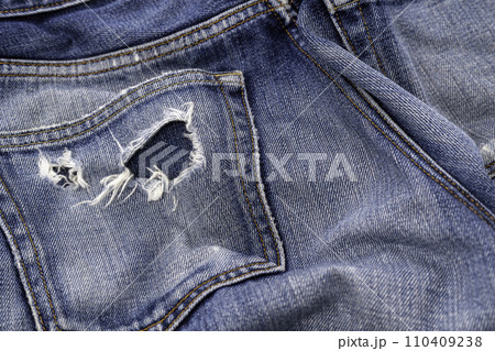 Denim blue jeans torn fashion design texture close up background
