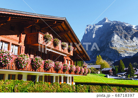 Grindelwald alpine village near Interlaken in the canton of Bern, Swiss alps