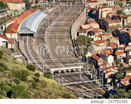 Bustling Train Center, Topdown Aerial Image Showcasing Vibrant And Crowded Train Station Environment