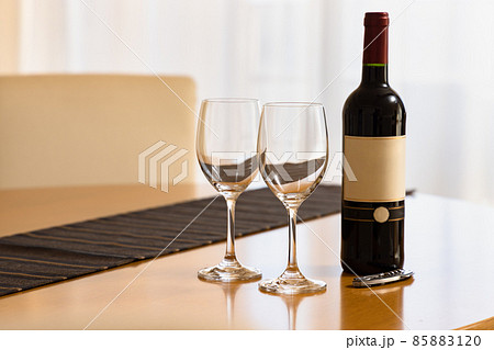 優雅な休日に飲む美味しそうな赤ワインとグラス