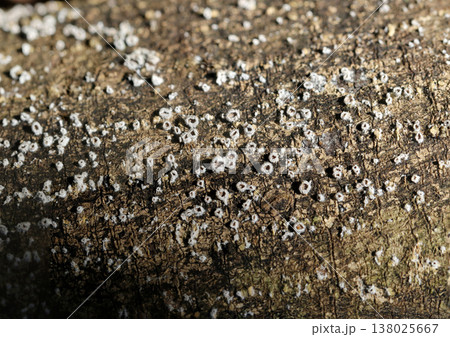 White growths of moss on an old log.