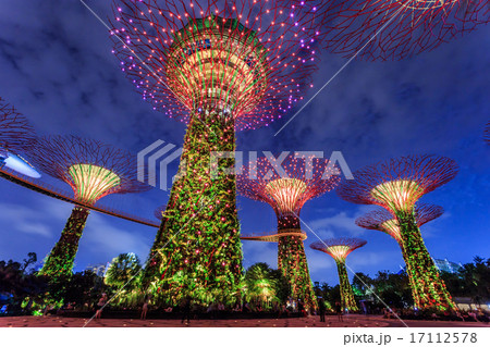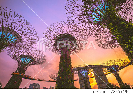 August 11, 2018: Supertree grove at marina bay garden in singapore, were conceived and designed by Grant Associates. Each supertree has its own planted character and specific environmental function.