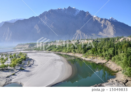 パキスタンのスカルドゥ 美しい山々とインダス川