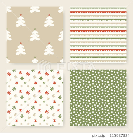 ミニマリスト、北欧スタイルのクリスマス用シームレスパターンセット