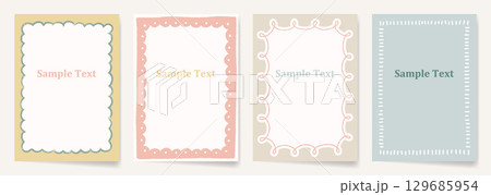 パステルカラーの長方形フレーム。招待状やカードに使える手描きの飾り枠。