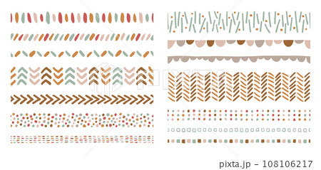 手書き、抽象的エレメントのシームレスなライン、ボーダーセット