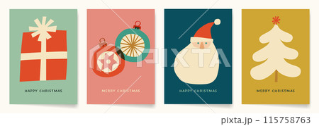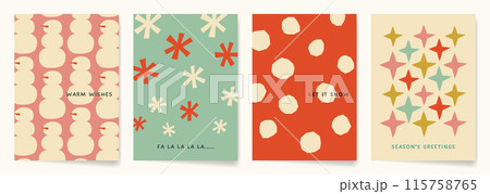 レトロモダン、シンプルな手描きイラストのクリスマスカードセット