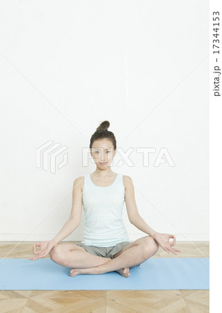 ヨガ_安楽座(あぐら・スカーサナ)のポーズをする若い女性_影なし