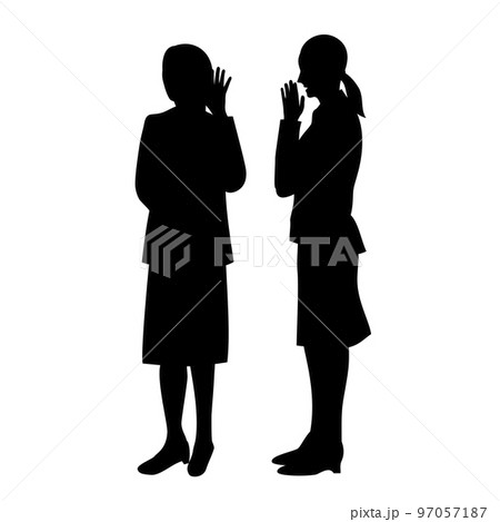 内緒話をする女性のシルエットイラスト