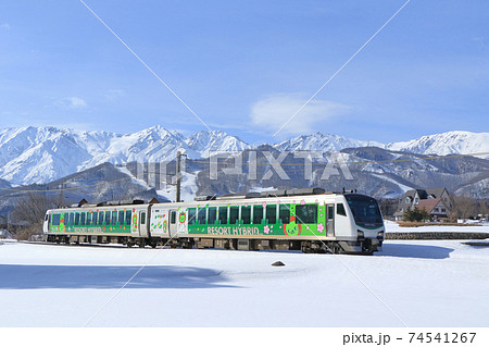 大糸線 冬の白馬山麓を行くリゾートビューふるさと