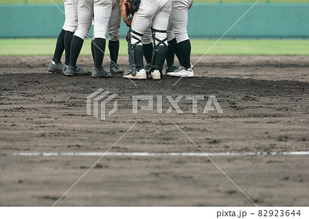 野球の試合中にマウンドに集まるピッチャーとキャッチャーなどの内野手陣