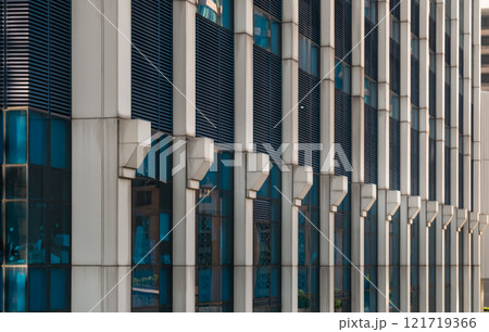 Architecture exterior of Modern building with many glass wall reflecting with the sky background at afternoon.