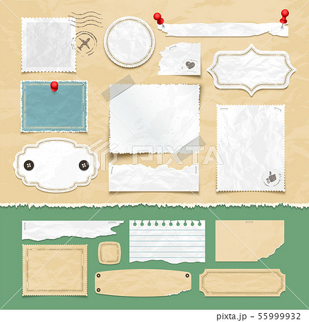 Vintage scrapbooking vector elements. Old scrap papers, photo frames, and labels