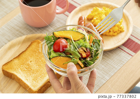 トーストとサラダ 朝食イメージ 軽食 イメージ素材