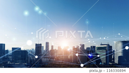 都市と通信ネットワーク バナー・広告向け横長ビジュアル