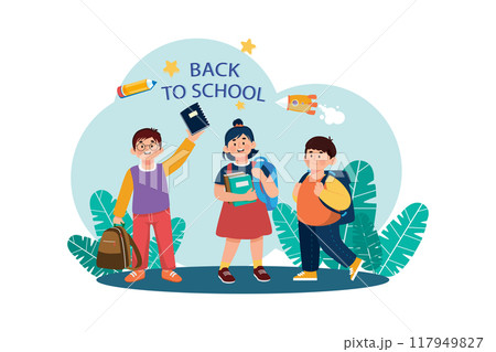Children with backpacks are ready to go back to school Illustration concept on white background