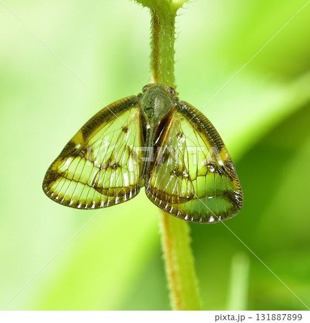 草にとまるスケバハゴロモ。小さなセミの仲間。