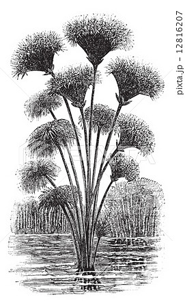 Papyrus sedge or Cyperus papyrus vintage engraving