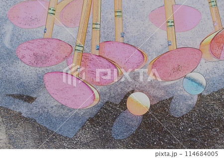 公園でグランドゴルフ クラブ整列カラーボール5