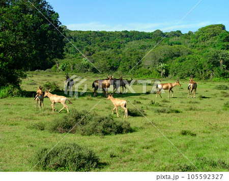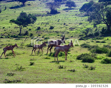 南アフリカ ポート・エリザベス 私設動物保護区 スコティア・サファリ レッドハートビーストの群