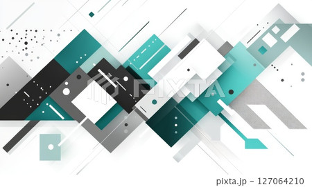 Abstract Geometric Pattern with Teal, Black, and White Shapes