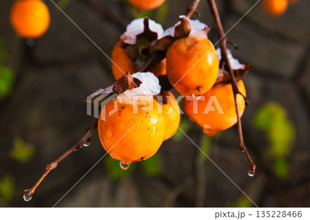 初雪の里山