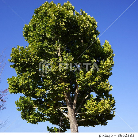 プラタナス並木 新緑 青空 プラタナス 爽やか エコ