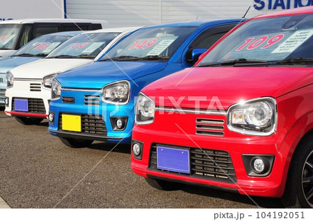 自動車イメージ 販売店に並ぶ車 軽自動車