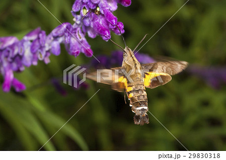生き物 昆虫 オオスカシバ、口吻をたたんで次の花に一直線