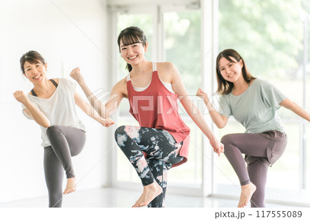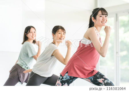 スポーツジムでダンス・エアロビレッスンをする女性達(パンチ)