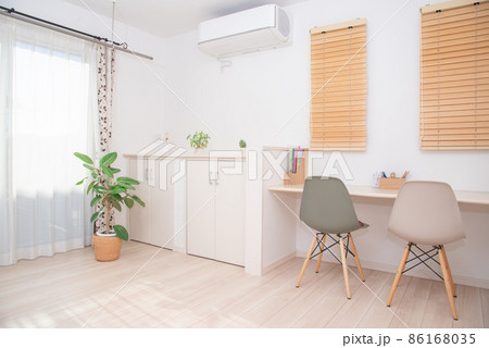 白色の内装の書斎 インテリアイメージ AIイラスト