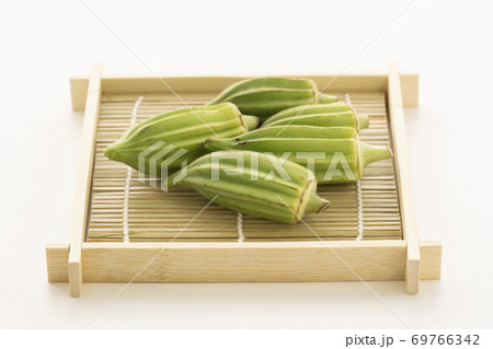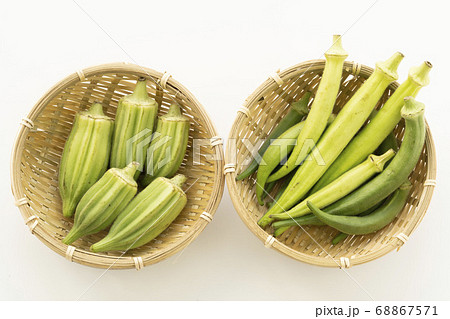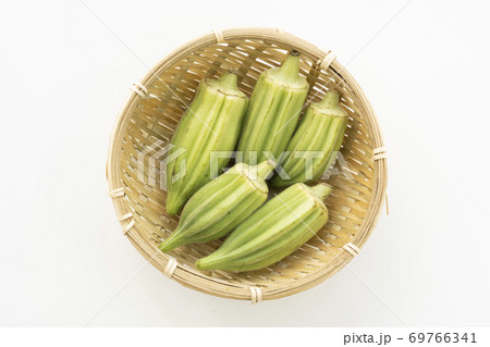 ザルに盛られた夏野菜(オクラとゴーヤ)
