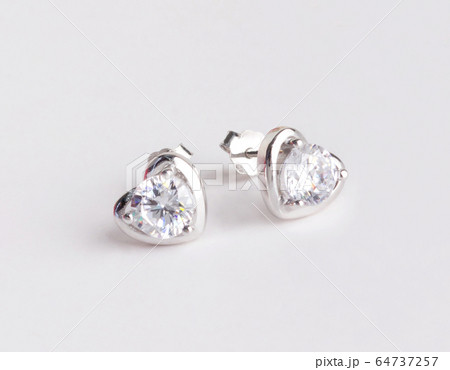 A pair of beautiful 925 sterling silver earrings in heart shape decorated with diamond