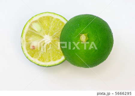 スライスしたスダチ、半分、クローズアップ、室内、白背景