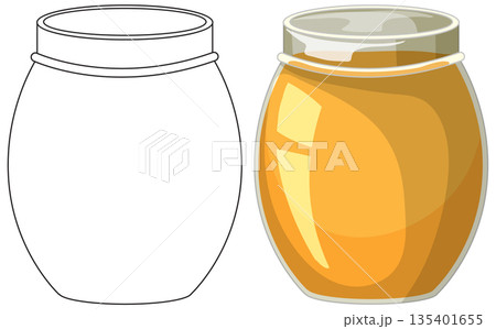 Vector Illustration of a Glass Jar with Honey and Outline Version