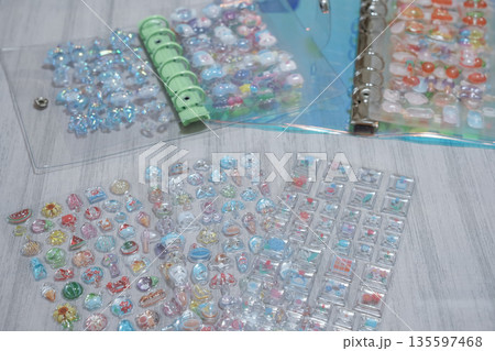 大人気のボンボンドロップシールをシール帳に貼る手元