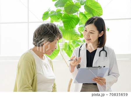 シニアに問診する医師