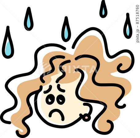 湿気による癖毛に悩む女性 イラスト