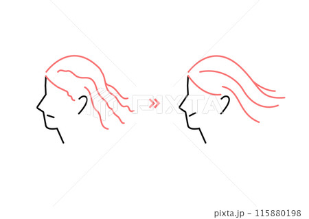 天然パーマ、くせ毛に悩む女性がストレートヘアになったイラスト