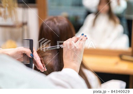 女性のヘアカットをする美容師