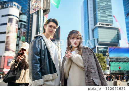 渋谷の街をデートする若いカップル