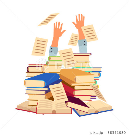 Vector flat man hands sticking out books pile heap