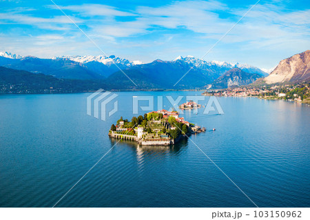 Aerial view of Isola Bella, in Isole Borromee archipelago in Lake Maggiore, Italy