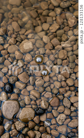 Wet pebbles on the beach
