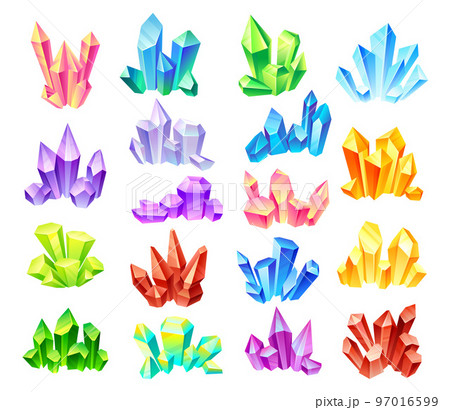 Crystal Gems and Minerals with Shiny Facet Big Vector Set